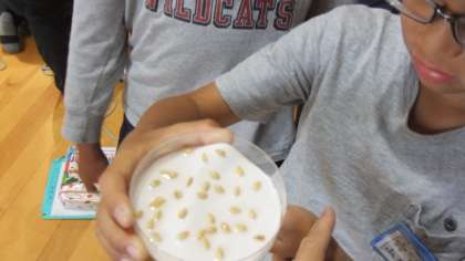 この先,種もみから育てた苗は4年生がバケツで育てていきます。5年生は,6月下旬ごろに地域の方からお借りした田んぼで田植えをします。子ども達はとても楽しみにしています。