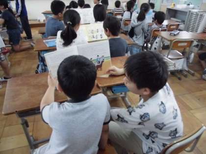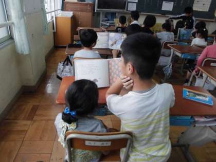 6年生が1年生のために本を選んでくれて一人一人に読み聞かせをしてくれました。