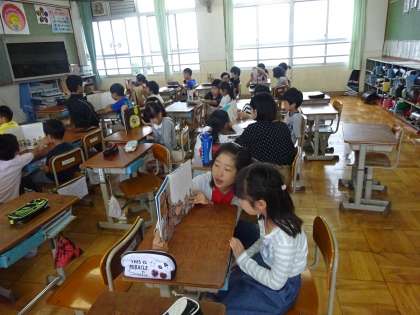 あじさい読書週間の取り組みで1年生に読み聞かせをしました。