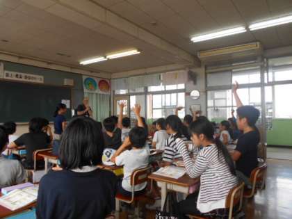 英語で尋ね,友達や先生の誕生日をカードに書きました。