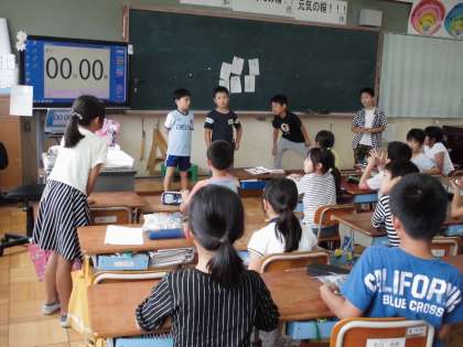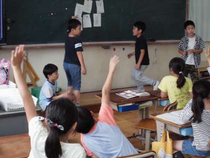 みんな手のひらや空に指で漢字を書いて正しく答えていました。