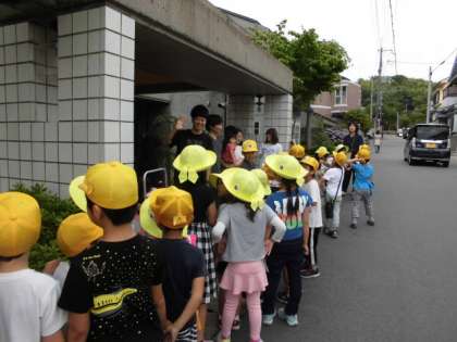 自分たちの家の近くのどこにこども110番の家がどこにあるのかを,みんなで見に行きました。子どもたちは緑色の札が見たことがある!!と言って見つけるたびに声があがっていました。安全に樫原の町で過ごせる一つの安心になりますね。