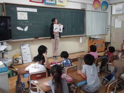 栄養教諭の長谷川先生に「にしんなす」のお話をしてもらいました。