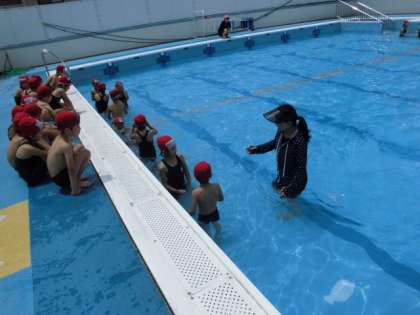 水中じゃんけんにチャレンジしたり,カニさんになったりしました。