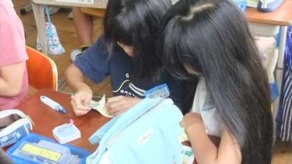 初めて針と糸を扱う子がほとんどでしたが,教え合う中で扱いに慣れてきました。