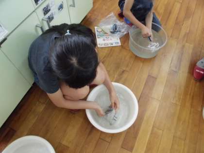 手洗いは手間がかかるけれど,汚れが落ちやすく,衣服が長持ちするという良さも学習しました。