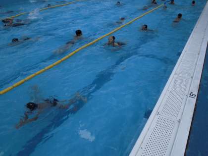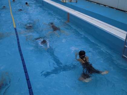 とてもいい天気の中4年生は水泳です。「バタ足・クロール・平泳ぎ」と自分ができる泳ぎ方に挑戦です。