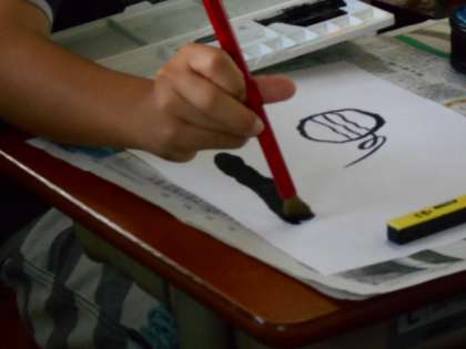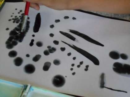 水の量を調節してにじませたり,墨の色を濃くしたり・・・。色の濃さ,線の太さ等を工夫すると,いろいろな表し方ができることを学習しました。