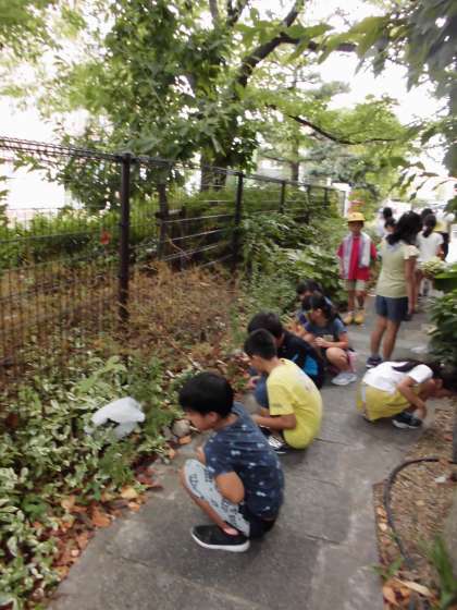 中庭と駐輪場にいる動物をさがしました。