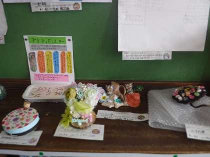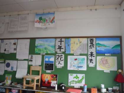 教室に,夏休みがんばった自由研究と作品を展示しています。それぞれの思いや工夫があり,見どころがたくさん。鑑賞タイムには,お互いに興味深く,楽しく鑑賞していました。