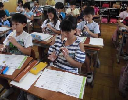 夏休み明け初めてのリコーダー。約1ヶ月ぶりのクラスみんなでのリコーダーです。