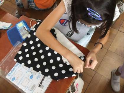 家庭科の学習で,夏休み前から「ランチョンマット作り」を行っています。