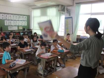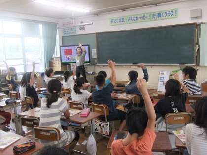 復唱したり,質問したり,活発に活動する姿が見られました。