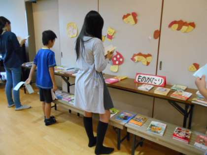 新しい本が部屋いっぱいに置かれていました。読み聞かせをしていただいた後は,ゆっくり本の世界に浸りました。
