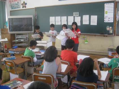 国語の学習で「自分たちの生活をよりよくするため」の提案書をつくり,クラスのみんなに発表しました。8つの班が発表した中で2つの班の提案が採用されました。