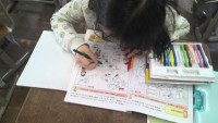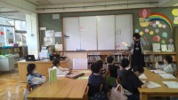 お話を聞いて好きな場面を選び,お話から想像したことを絵に表します。とても素敵なお話の世界が画用紙の中に広がっています。