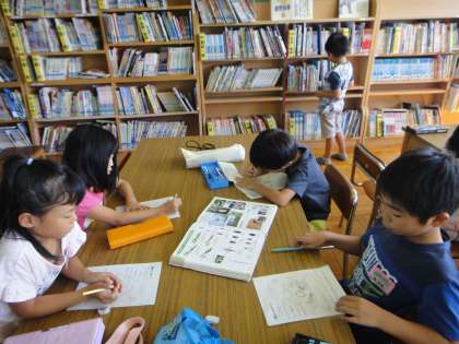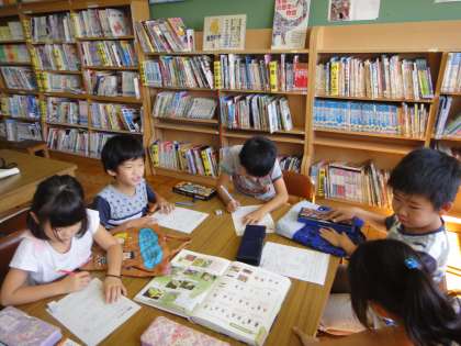 図書室で図鑑をつかって「小さな なかまたち」についての