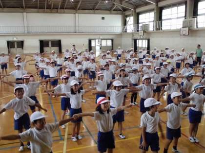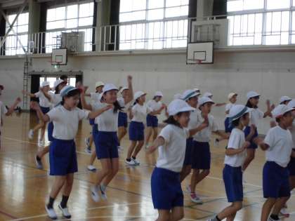運動会に向けてソーラン節の練習が始まりました。『楽・美・魂ソーラン』楽しく美しく魂をこめて練習です!