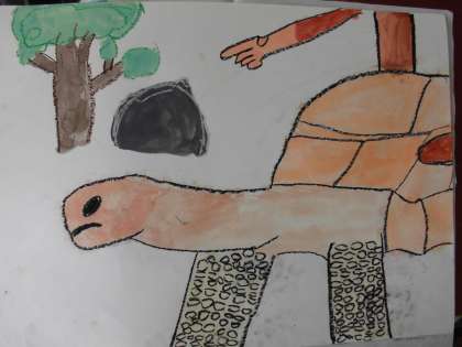 絵の具で色付けもしています。2色以上を混ぜて,自分だけの色づくりをしています。