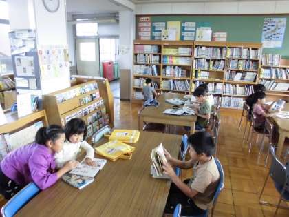 2週間に一回,図書室に行っています。本の返却・貸し出しを終えると,落ち着いて読書しています。お気に入りのシリーズを読み続けている人が多いです。