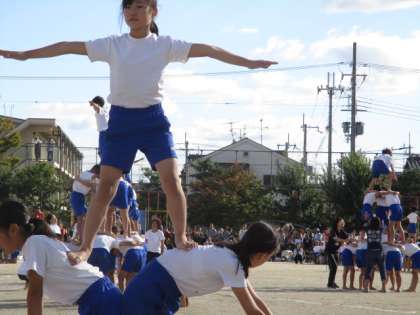 最後を締めくくるのは,6年生の「組体操2018虹〜樫原にかける虹〜」。