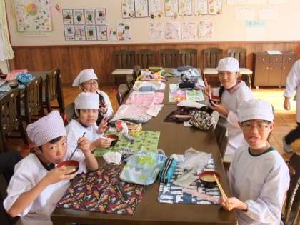 みそ汁はできたてで先に食べ,ご飯は給食のカレーといっしょに食べました。