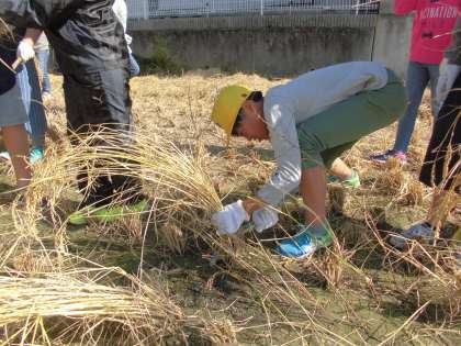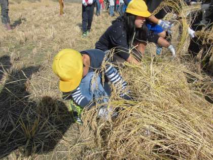 大きく,強く育ってうれしい!子どもたちの笑顔がお米と一緒に輝きました。
