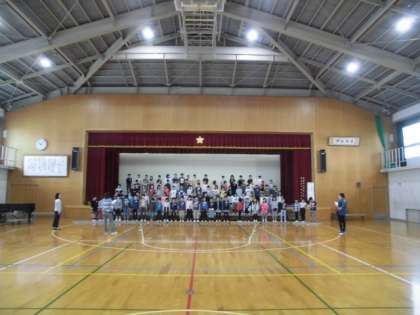 入退場の仕方や立ち位置をしっかり確認し,体育館中に響き渡る声が出せるよう練習しました。