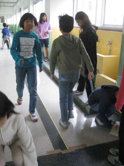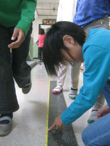 まず,10歩ずつ5回歩いた時の記録を取りました。その1回分の平均を求めてから1歩の歩はばを計算しました。