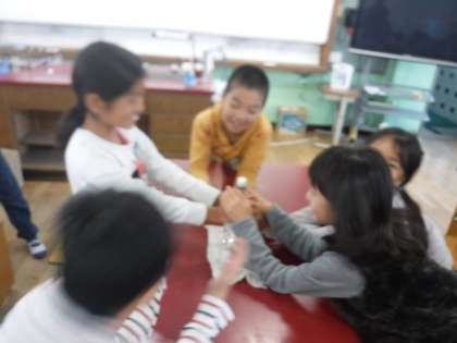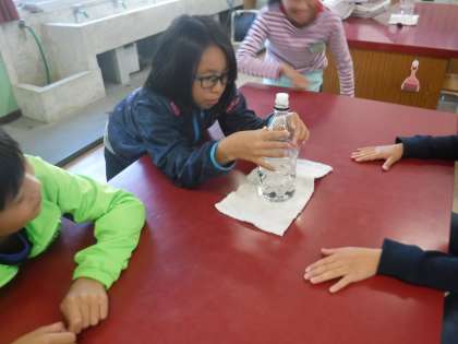 今日は,ペットボトルにふたをした栓を飛ばす実験をしました。グループで試行錯誤しながら,楽しくポン!ポン!ポン!と飛ばすことができました。