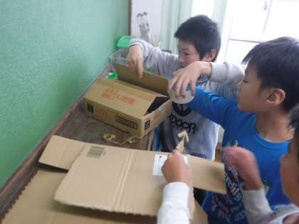 工作係が段ボールで作り始めた大作が完成に近づいてきました。社会科で学習した「水力発電所」の模型です。休み時間にも熱心に部品などを作っていました。学習したことから,関心が広がっていくのはいいですね。
