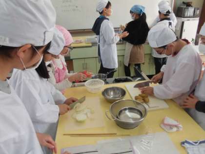 1組は20日(火)に小学校生活最後の調理実習をしました。