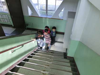 総合的な学習の時間「人にやさしく」で,2つ目の体験をしました。アイマスクをして慎重に歩いたり気配りしながら手引きする様子が見られました。体験後は,真っ暗で怖かった,不安だった,手引きの友達がいて心強かった,手引きは責任重大で覚悟が必要などの感想が出ました。目が不自由な人はその中を毎日一人で歩いていてすごい,出来ることを手助けしたいという意見もありました。