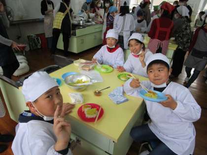保護者の方々と子ども達がふれあいながら,おいしい五平餅ができました。