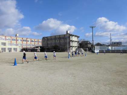 5分間を同じペースで走っています。声を掛け合って頑張っています。