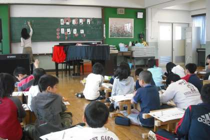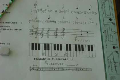 5年生になって初めての音楽の授業がありました。四分音符や八分音符などの記号の名前を学習し,長短を知りました。初めて習うことなので,慣れない部分もありましたが,子どもたちはとても楽しそうに取り組んでいました。