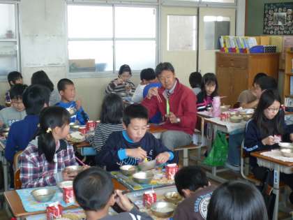 新しい校長先生をお迎えして1週間,6年2組のみんなはもうすっかり校長先生と仲良しです。先日数人の子達が校長先生とお話をしている中で,「給食6−2に食べに来て!」とお誘いしたようで,今日は突然校長先生が来てくださいました。食べながらいろんなお話をして,校長先生の秘密をいろいろと教えてもらいましたよ!