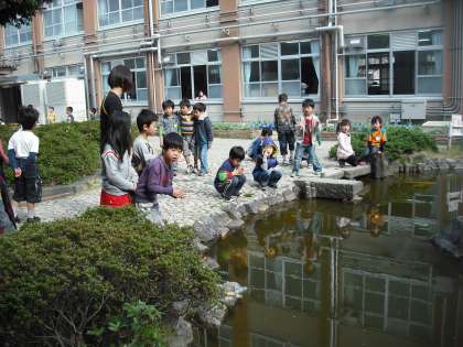 おはようございます。今日も朝から元気いっぱいの樫原っ子!!子ども達にとって大切な時間ですね☆運動場で遊ぶ子,中庭の池を見ている子,読書をしている子,クラスのお仕事をしている子など様々な時間が見えました。