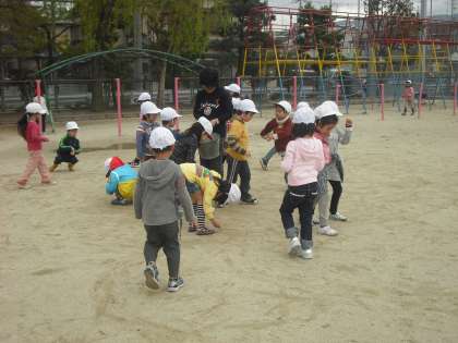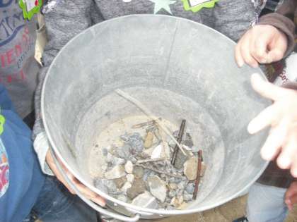 1年生はそうじの時間に石拾いをしています。運動場には木の枝や石がたくさん落ちていました。運動場で安全に活動できるようにがんばって拾いました。