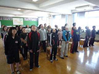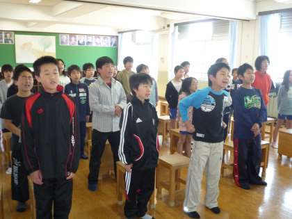 今年から音楽の授業をしてくださる先生が変わりました。慣れるまではちょっと戸惑いがあるかも…と思っていましたが,心配無用でした。先生の指示に従ってウォーミングアップ。とってもリラックスしています(写真1枚目)。「去年の卒業式で立派に歌った君達にお願い!」と1年生を迎える会で歌う歌のプロモーションビデオを撮りました(写真2枚目)。