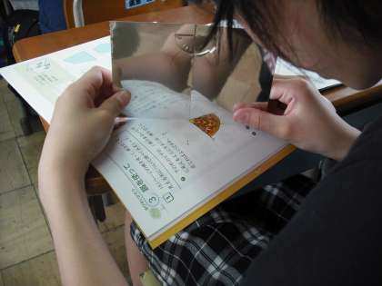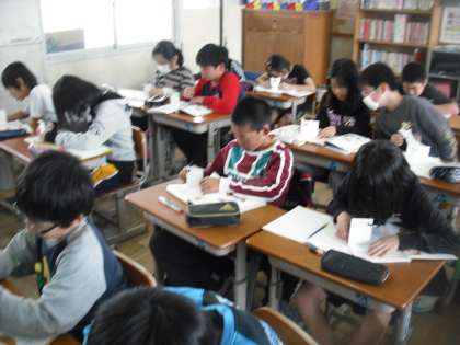 算数は対称な図形を学習しています。今日は鏡を使い対称な図形を作ろうと、みんな角度を変えたり、自ら動いたりと頭を柔らかくした授業になりました。