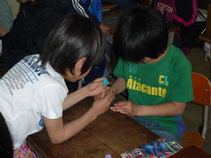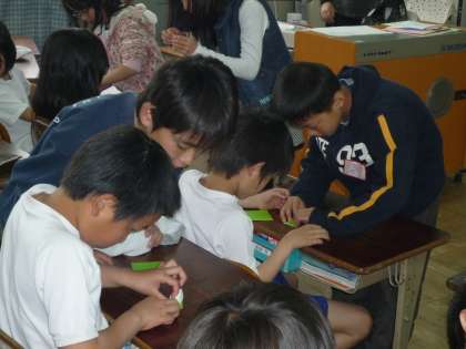 今日は3・4年生の教室にお邪魔して鶴を折りに行きました。3年生も4年生もあっという間に2羽を折り上げて,各色たくさん集まってきました。来週からはいよいよパネルに仕上げていきます。