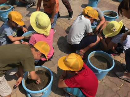 6月20日に,バケツの中の土をよく混ぜて,準備をしました。