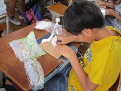 図画工作科の学習で「12年後の私」を,紙粘土と芯材で作っています。