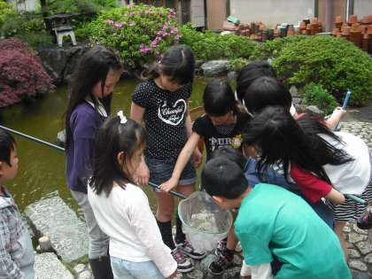 1年生と昼休みに池で