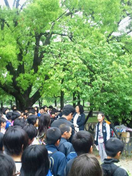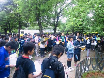 雨がやんで,平和集会を行うことができました。公園内のオリエンテーリングも雨が降らなければいいと願っています。