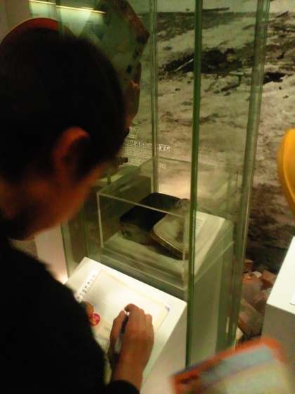 ドームの模型や焼けたお弁当箱に見入る子どもたちでした。熱心に見学し,メモをとっていました。