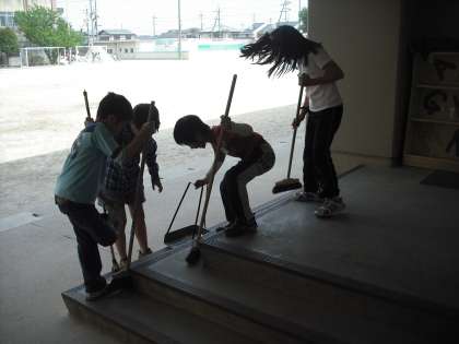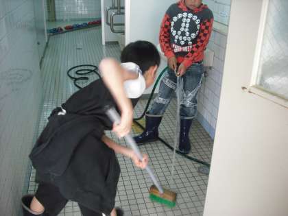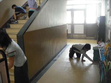 一生懸命に掃除を頑張っているこの画像は3年生と4年生と6年生です。