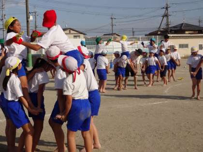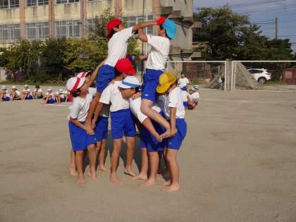 運動場での騎馬戦練習にも慣れてきました。チーム戦や大将戦では,作戦を立てたり,協力したりしながら戦っていきます。見ている人がドキドキするような盛り上がりを期待しています。