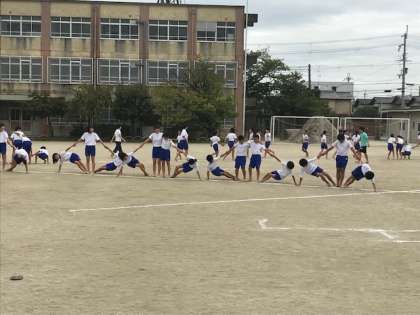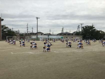 6年生は,これまで体育館でしてきた組体操の練習を,運動場で行いました。音楽に合わせて,場所や向きを確認しながら,より力強く,美しい演技になるように頑張っています。当日は,きっと見る人を感動させてくれることと思います。